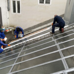 Zur nachhaltigen Instandsetzung des bestehenden Drahtglasdachs wurde die gesamte Fläche mit Triflex ProDetail abgedichtet. Dieses Abdichtungssystem ermöglicht eine nahtlose, vollflächige Versiegelung, die selbst komplexe Anschlüsse und Unebenheiten zuverlässig einbindet. Der Flüssigkunststoff schützt die vorhandene Dachkonstruktion dauerhaft vor Feuchtigkeitseintritt und Witterungseinflüssen und verlängert so die Lebensdauer des Bestands erheblich. Durch die rissüberbrückende und UV-beständige Eigenschaft des Materials konnte eine langlebige, wartungsarme Lösung geschaffen werden, ohne das vorhandene Dach austauschen zu müssen.