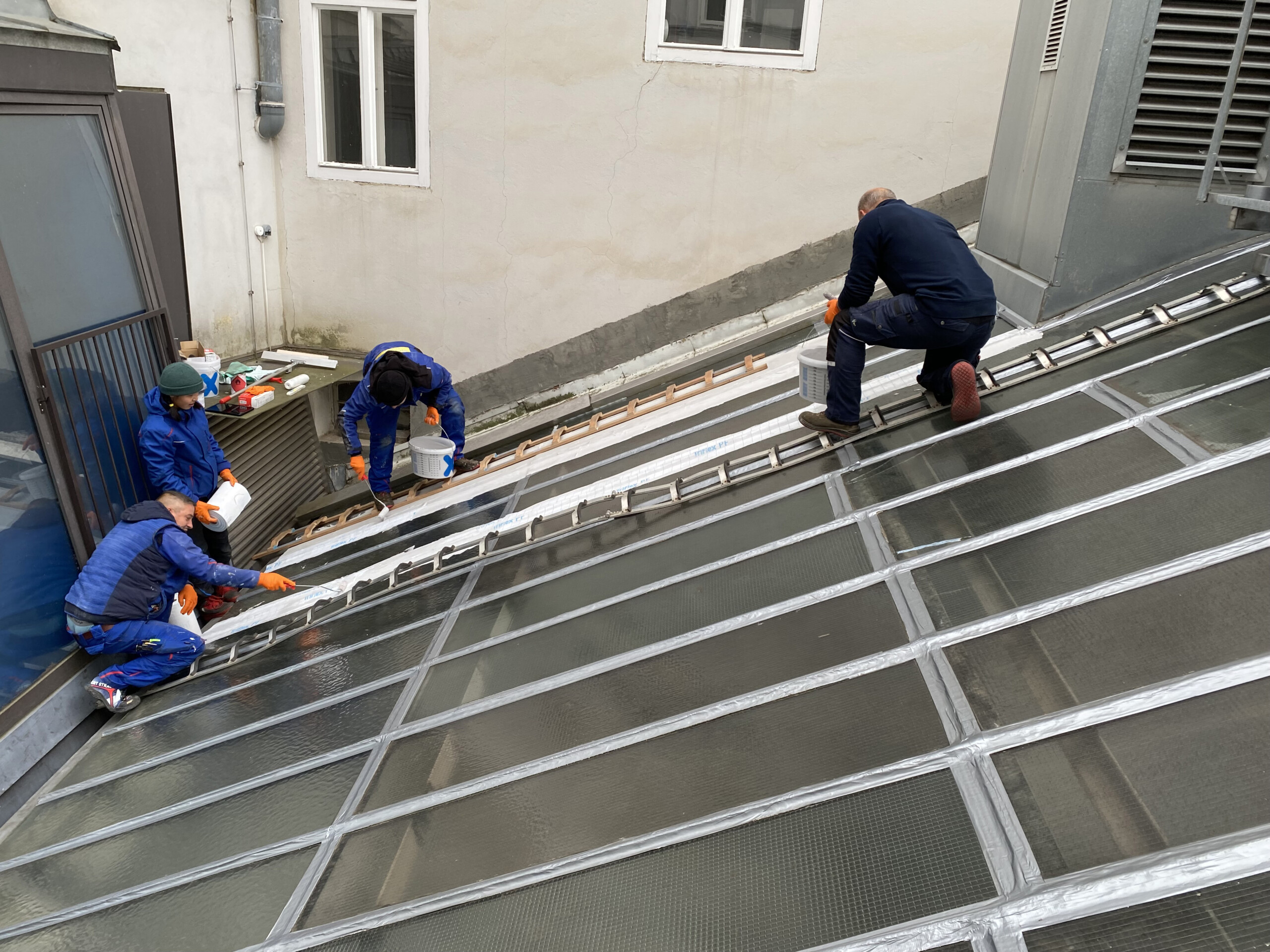 – Flächenabdichtung der Glasflächen mit Triflex ProDetail