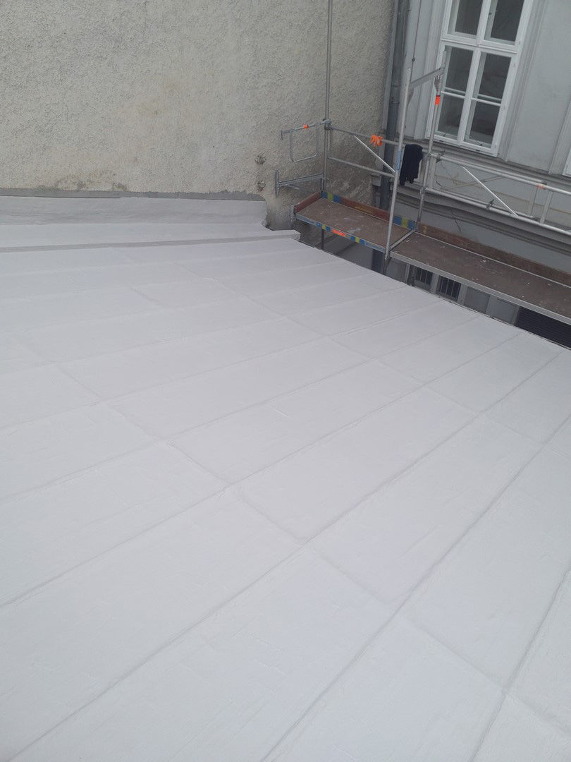 Nach der ausführlichen Objektbegehung durch das erfahrene Team von Spitzer Dach gemeinsam mit Triflex entstand ein passgenaues Sanierungskonzept. Ein Haftzugversuch im Vorfeld bestätigte die Eignung des gewählten Systems auch unter schwierigen Bedingungen. Mit den eingesetzten Komponenten ließ sich die Dachfläche dauerhaft und ohne Abriss abdichten. Triflex ProDetail überzeugt nur durch seine hohe Leistungsfähigkeit und Flexibilität. Besonders bei komplizierten Details wie Fugen, Trägern, Anschlüssen und Materialübergängen zeigt Triflex ProDetail seine Stärke.