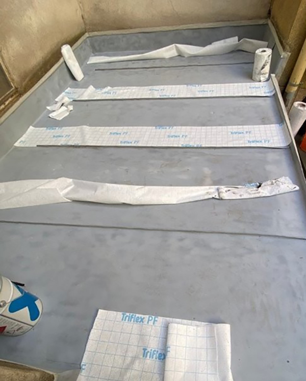 – Abdichtung der Flächen mit Triflex ProDetail inklusive Vlieseinlage