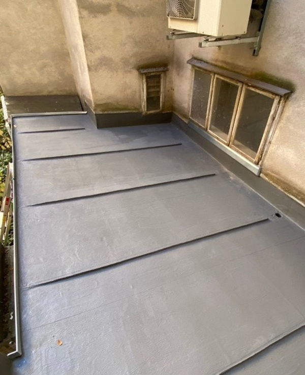Zu Beginn der Sanierung wurde das Blechdach gründlich gereinigt und die alten Farbschichten abgeschliffen. Für eine einfache und schnelle Grundierung des Metalldachs erwiesen sich die Eigenschaften von Triflex Metal Primer als ideal. Dieser Primer eignet sich für rostige Untergründe und trocknet schnell aus. Im Anschluss dichteten die Verarbeiter die Details und Fläche mit Triflex ProDetail inklusive Vlieseinlage ab.