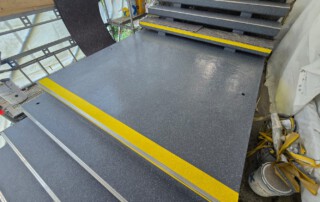 Die Treppe zum Bahnsteig in Sierksdorf ist als zentraler Zugang zum Hansa-Park täglich hohen Belastungen ausgesetzt. Tausende Besucher nutzen diese als schnellste Verbindung zum Freizeitpark. Nach jahrzehntelanger Nutzung zeigten sich deutliche Schäden am Beton und an der alten Epoxidharzbeschichtung. Abplatzungen, Feuchtigkeit im Untergrund und Unebenheiten beeinträchtigten die Sicherheit und das Erscheinungsbild. Ein Abriss der kompletten Treppe kam aus wirtschaftlichen und nachhaltigen Gründen nicht in Betracht. Der Verarbeiter und Xcellence Partner, Schneider Malereibetrieb und Bauleistungen GmbH, empfiehl aufgrund langjähriger Erfahrungen deshalb eine Sanierung mit den Systemen vom Mindener Flüssigkunststoffspezialisten Triflex. Zum Einsatz kam Triflex TSS auf Basis von Polymethylmethacrylat, kurz PMMA.