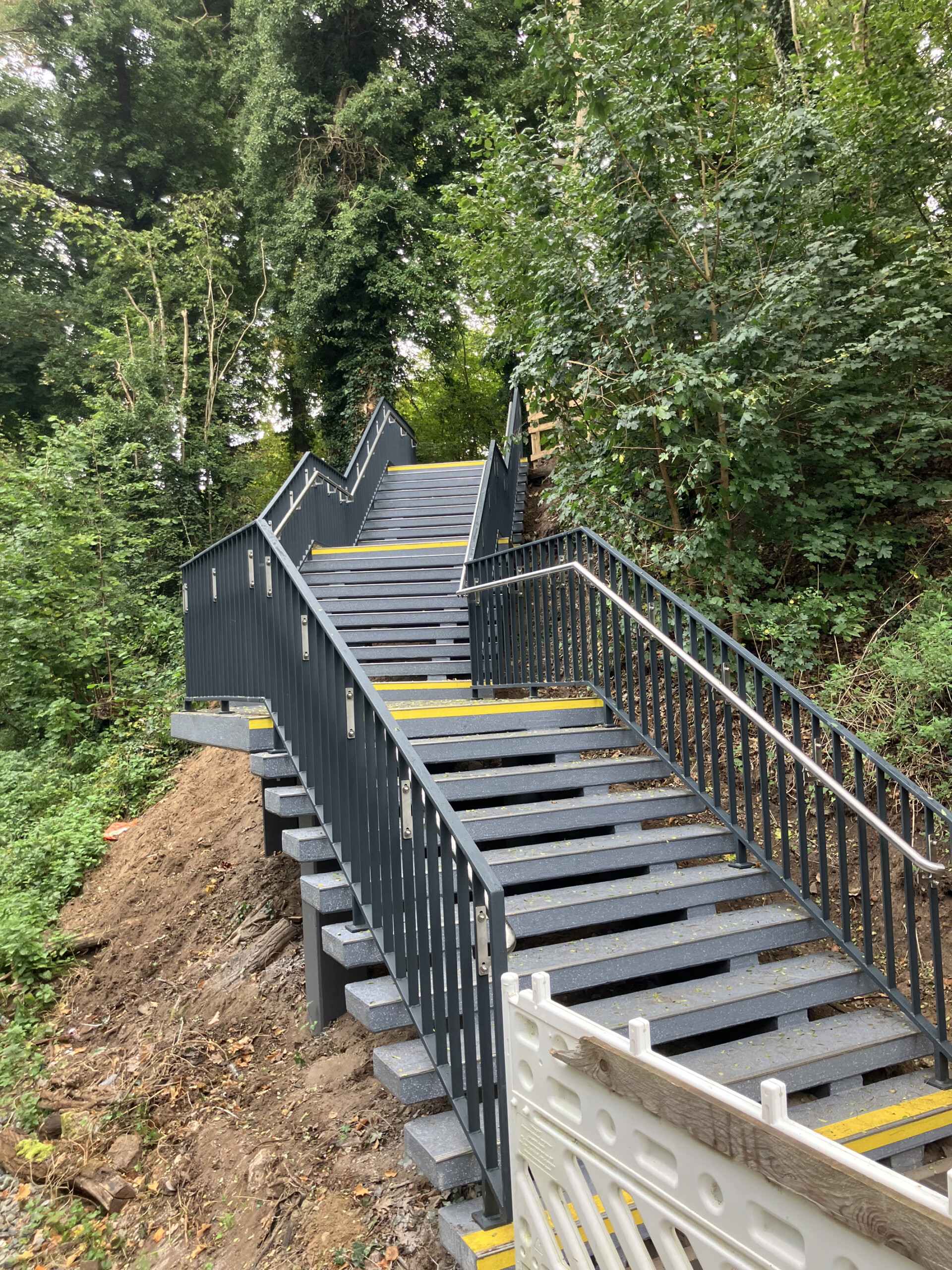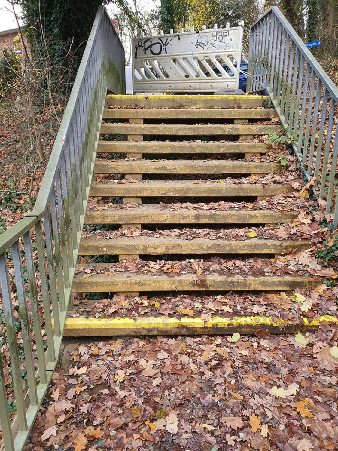 Die Anforderungen an die neue Oberfläche waren hoch. Die Konstruktion aus den 1980er Jahren sollte langfristig wasserundurchlässig sein, den stetigen Witterungseinflüssen trotzen und eine klare Orientierung für Menschen mit eingeschränktem Sehvermögen bieten. Ebenso wichtig war eine kurze Ausführungsdauer. Die Wahl fiel daher auf das speziell für Treppen entwickelte PMMA-Dickbeschichtungssystem Triflex TSS. Der Verlaufmörtel widersteht dauerhaft den hohen mechanischen Belastungen auf Treppen. Die Beschichtung ist rutschhemmend und kombiniert dank farblicher Gestaltungsmöglichkeiten Funktionalität und Optik. Triflex TSS kann bei Untergrundtemperaturen bis 0 Grad Celsius verarbeitet werden und eignet sich daher für Arbeiten in der kühleren Jahreszeit.